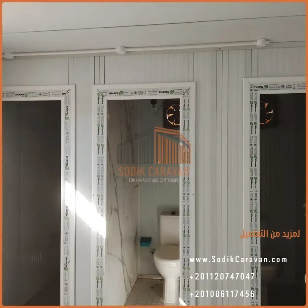 نصمّم ونُصنّع كرفانات حمامات ودورات مياه متنقلة (ثابتة أو بمقطورات) باستخدام مواد مقاومة للرطوبة والبكتيريا، حيث تلتزم سوديك كرفان (SODIK CARAVAN) بأدق المعايير الصحية، ثم نوفّر لك خدمة توريد وتركيب فوري في أي موقع داخل مصر. يشمل العمل تركيب أطقم صحية عالية الجودة، خزانات مياه، فلاتر، وتمديدات سباكة مخفية، مع ضمان سهولة التنظيف والصرف. بفضل فريقنا الهندسي نضمن لك سرعة تنفيذ، متانة في تحمل الاستخدام الكثيف في مواقع العمل والفعاليات، وأسعار تنافسية مع إمكانية التنفيذ حسب عدد العيون المطلوبة.